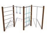 Šplhacia sieť, rebriny, šplhacia tyč, hojdacie lanové kruhy. Viac informácií