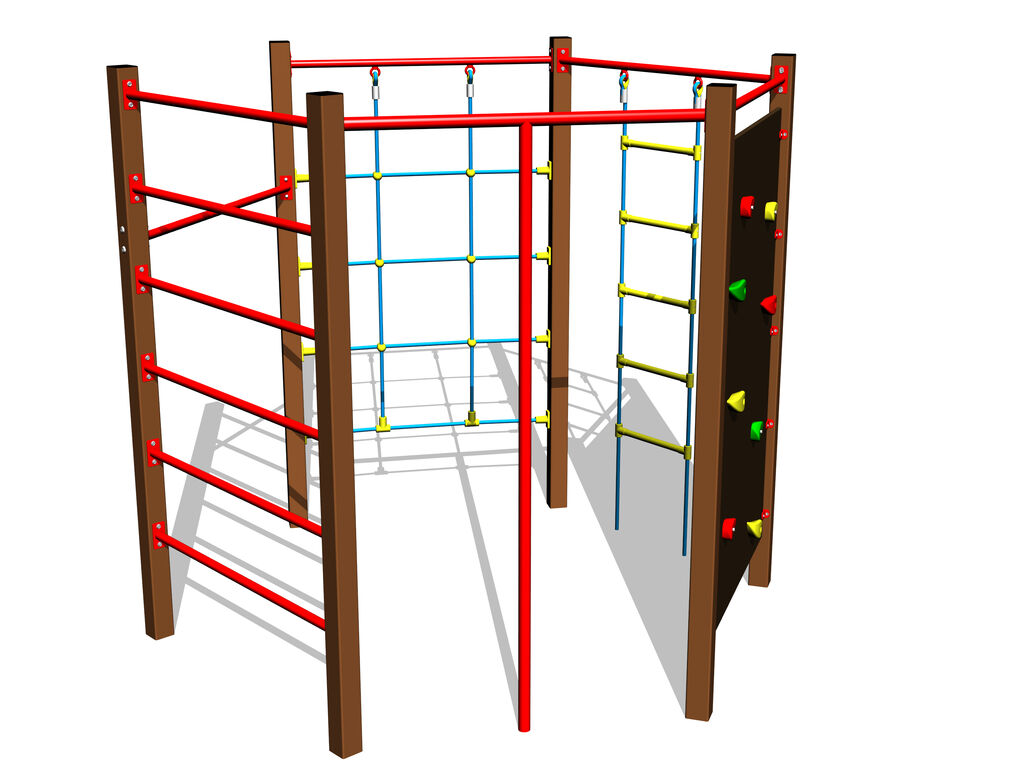 Šplhacia tyč, rebriny, lanový rebrík, hrazda, šplhacia sieť, lezecká stena. Viac informácií