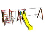 Sedadlo a houpačkové závesy nie sú súčasťou hojdačky. Nutné prikúpiť sedátko (1 ks) podľa výberu a houpačkové závesy (2 ks). Lezecká stena, šplhacia sieť, rebriny, lanový rebrík, šikmý rebríkový výstup s kovovými nášľapy, šmýkačka, madlo, šplhacie lano, kovové rahno. Viac informácií