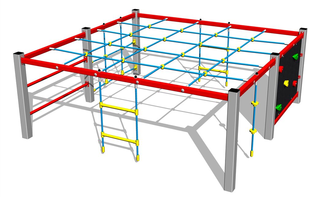 Šplhacia sieť, rúčkovacia sieť, šplhacie lano a lanový rebrík sú vyrobené z materiálu HERKULES (16 mm lana z polypropylénu s vnútorným oceľovým jadrom). U lanového rebríku a šplhacej sieti sú laná spojené plastovými spojmi. Lezecká stena je vyrobená z HPL (vysokotlakový laminát, ktorý sa vyznačuje vysokou farebnou stálosťou, odolnosťou proti poškriabaniu a odolnosťou proti vode). Horolezecké úchyty sú vyrobené z polyesteru, to zaručuje dlhodobú životnosť, stálofarebnosť aj šetrný povrch pre kožu na rukách. Všetok spojovací materiál je pozinkovaný nebo nerezový.