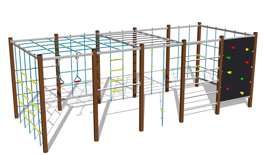 Šplhacia sieť, rúčkovacia sieť, šplhacie lano a lanový rebrík sú vyrobené z materiálu HERKULES (16 mm lana z polypropylénu s vnútorným oceľovým jadrom). U lanového rebríku a šplhacej sieti sú laná spojené plastovými spojmi. Lezecká stena je vyrobená z HPL (vysokotlakový laminát, ktorý sa vyznačuje vysokou farebnou stálosťou, odolnosťou proti poškriabaniu a odolnosťou proti vode). Horolezecké úchyty sú vyrobené z polyesteru, to zaručuje dlhodobú životnosť, stálofarebnosť aj šetrný povrch pre kožu na rukách. Všetok spojovací materiál je pozinkovaný nebo nerezový.