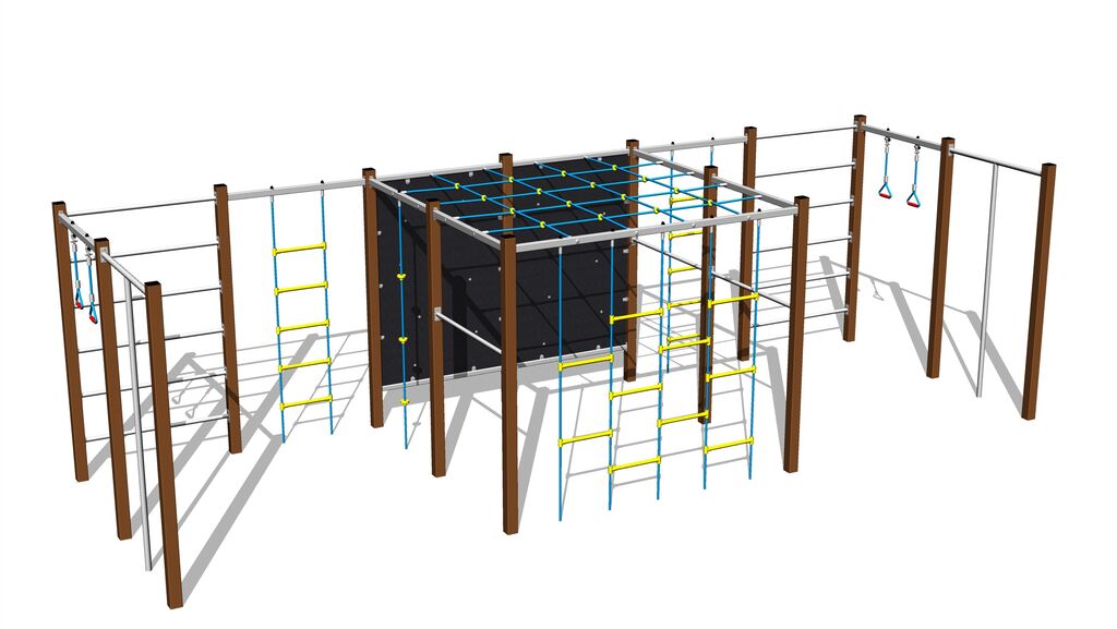Šplhacia sieť, rúčkovacia sieť, šplhacie lano a lanový rebrík sú vyrobené z materiálu HERKULES (16 mm lana z polypropylénu s vnútorným oceľovým jadrom). U lanového rebríku a šplhacej sieti sú laná spojené plastovými spojmi. Lezecká stena je vyrobená z HPL (vysokotlakový laminát, ktorý sa vyznačuje vysokou farebnou stálosťou, odolnosťou proti poškriabaniu a odolnosťou proti vode). Horolezecké úchyty sú vyrobené z polyesteru, to zaručuje dlhodobú životnosť, stálofarebnosť aj šetrný povrch pre kožu na rukách. Všetok spojovací materiál je pozinkovaný nebo nerezový.