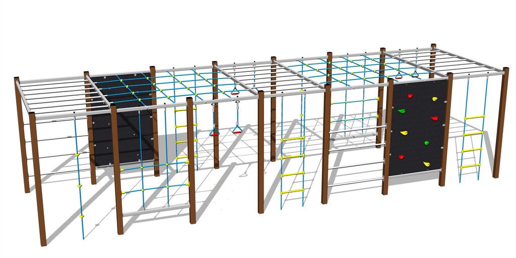 Šplhacia sieť, rúčkovacia sieť, šplhacie lano a lanový rebrík sú vyrobené z materiálu HERKULES (16 mm lana z polypropylénu s vnútorným oceľovým jadrom). U lanového rebríku a šplhacej sieti sú laná spojené plastovými spojmi. Lezecká stena je vyrobená z HPL (vysokotlakový laminát, ktorý sa vyznačuje vysokou farebnou stálosťou, odolnosťou proti poškriabaniu a odolnosťou proti vode). Horolezecké úchyty sú vyrobené z polyesteru, to zaručuje dlhodobú životnosť, stálofarebnosť aj šetrný povrch pre kožu na rukách. Všetok spojovací materiál je pozinkovaný nebo nerezový.