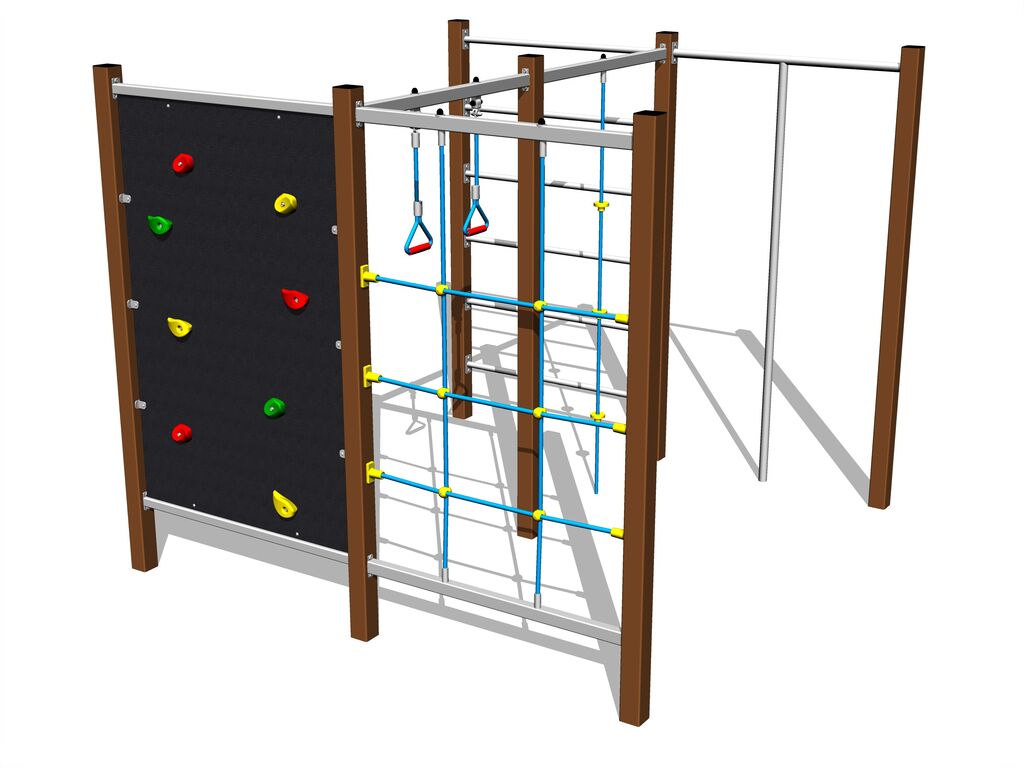 Šplhacia sieť, rúčkovacia sieť, šplhacie lano a lanový rebrík sú vyrobené z materiálu HERKULES (16 mm lana z polypropylénu s vnútorným oceľovým jadrom). U lanového rebríku a šplhacej sieti sú laná spojené plastovými spojmi. Lezecká stena je vyrobená z HPL (vysokotlakový laminát, ktorý sa vyznačuje vysokou farebnou stálosťou, odolnosťou proti poškriabaniu a odolnosťou proti vode). Horolezecké úchyty sú vyrobené z polyesteru, to zaručuje dlhodobú životnosť, stálofarebnosť aj šetrný povrch pre kožu na rukách. Všetok spojovací materiál je pozinkovaný nebo nerezový.