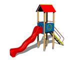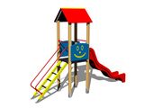 Vež, šmýkačka, strieška ve tvare "A", 2x bariéra, šikmý výlez s nášľapy a kovovými madlami. Viac informácií