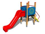 Vež, šmýkačka, 2x bariéra, šikmý výlez s nášľapy a kovovými madlami. Viac informácií
