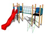 2x vež, šmýkačka, 3x bariéry z HDPE, kolmý rebrík, lanový most medzi vežami, šikmý sieťový výlez. Viac informácií