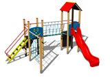 2x vež, šmýkačka, strieška v tvare "A", šikmý výlez s nášľapy a kovovámi madlami, šikmý výlez s lanom a nášľapy z HDPE, lanový most medzi vežami, kolmá lezecká stena, šplhacia sieť 2 x 2 m, 2x bariéra z HDPE. Viac informácií