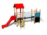 2x vež, šmýkačka, strieška v tvare "A", bariéra, šikmý výlez s lanom a nášľapy z HDPE, šikmý sieťový výlez, kolmý rebrík, šikmý výlez s nášľapy a kovovými madlami, počítadlo, kresliaca tabuľa, most s lanovým zábradlím. Viac informácií