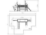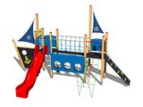 2x vež, šmýkačka, kovová bariérya usadená do dreveného rámu, 2x stožiar s vlajkou, kresliaca tabuľa, šikmý sieťový výlez, šikmý výlez s lanom a nášľapy z HDPE, most s lanovým zábradlím, vlajka, bariéra s priezory, kotva a kormidlo z HDPE, 2x bariéra z HDPE. Viac informácií
