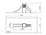 Vež, šmýkačka, 2x bariéra, šikmý výlez s nášľapy a kovovými madlami. Viac informácií