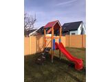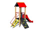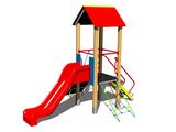 Vež, šmýkačka, strieška ve tvare "A", šikmý výlez s lanom a nášľapy z HDPE, šikmý sieťový výlez, šikmý výlez s nášľapy a kovovými madlami. Viac informácií