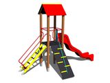 Vež, šmýkačka, strieška ve tvare "A", šikmý výlez s lanom a nášľapy z HDPE, šikmá šplhacia sieť, šikmý výlez s nášľapy a kovovými madlami. Viac informácií