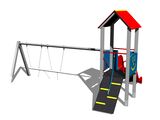 Sedadlo a houpačkové závesy nie sú súčasťou hojdačky. Nutné prikúpiť sedátko (2 ks) podľa výberu a houpačkové závesy (4 ks). Vež, strieška ve tvare "A", 2x bariéra, šikmý výlez s lanom a nášľapy, reťazová dvojhojdačka s kovovým, pozinkovaným rahnom. Viac informácií