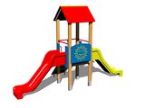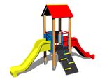 Vež, strieška ve tvare "A", 2x šmýkačka, bariéra, šikmý výlez s lanom a nášľapy. Viac informácií
