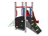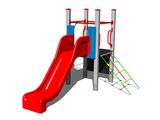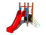 Vež, šmýkačka, šikmý výlez s lanom a nášľapy z HDPE, šikmá šplhacia sieť, kolmá lezecká stena na veži. Viac informácií