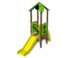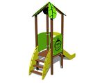 Vež, šmýkačka, strieška v tvare listu, šikmý výlez s nášľapy a madlami z HDPE, 2x bariéra. Viac informácií