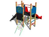 Vež, šmýkačka, šikmý výlez s lanom a nášľapy z HDPE, šikmá šplhacia sieť, 2x bariéra, počítadlo. Viac informácií