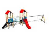 Sedadlo a houpačkové závesy nie sú súčasťou hojdačky. Nutné prikúpiť sedátko (2 ks) podľa výberu a houpačkové závesy (4 ks). 2x vež, šmýkačka, 2x strieška ve tvare ihlanu, 2x bariéry z HDPE, šikmý výlez s nášľapy a kovovými madly, šikmý rebríkový výstup s kovovými nášľapy, lanový most medzi vežami, šikmá lezecká stena s horolezeckými úchytmi, kovové rahno. Viac informácií
