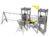 Sedadlo a houpačkové závesy nie sú súčasťou hojdačky. Nutné prikúpiť sedátko (2 ks) podľa výberu a houpačkové závesy (4 ks). 2x vež, šmýkačka, 3x bariéra z HDPE, šikmý sieťový výlez, kolmá lezecká stena na veži s nášľapmi, vlajka, 2x cimburie z HDPE, kovové rahno, lanový most s nášľapmi. Viac informácií