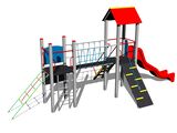 2x vež, šmýkačka, strieška v tvare "A", bariéra, šikmý výlez s lanom a nášľapy z HDPE, šikmý sieťový výlez, kolmý rebrík, šikmý výlez s nášľapy a kovovými madlami, počítadlo, kresliaca tabuľa, most s lanovým zábradlím. Viac informácií