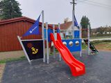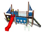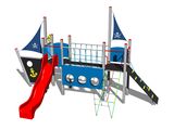 2x vež, šmýkačka, kovová bariérya usadená do dreveného rámu, 2x stožiar s vlajkou, kresliaca tabuľa, šikmý sieťový výlez, šikmý výlez s lanom a nášľapy z HDPE, most s lanovým zábradlím, vlajka, bariéra s priezory, kotva a kormidlo z HDPE, 2x bariéra z HDPE. Viac informácií