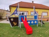 2x vež, šmýkačka, kovová bariérya usadená do dreveného rámu, 2x stožiar s vlajkou, kresliaca tabuľa, šikmý sieťový výlez, šikmý výlez s lanom a nášľapy z HDPE, most s lanovým zábradlím, vlajka, bariéra s priezory, kotva a kormidlo z HDPE, 2x bariéra z HDPE. Viac informácií
