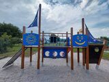2x vež, šmýkačka, kovová bariérya usadená do dreveného rámu, 2x stožiar s vlajkou, kresliaca tabuľa, šikmý sieťový výlez, šikmý výlez s lanom a nášľapy z HDPE, most s lanovým zábradlím, vlajka, bariéra s priezory, kotva a kormidlo z HDPE, 2x bariéra z HDPE. Viac informácií