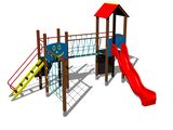 2x vež, šmýkačka, strieška v tvare "A", šikmý výlez s nášľapy a kovovámi madlami, šikmý výlez s lanom a nášľapy z HDPE, lanový most medzi vežami, kolmá lezecká stena, šplhacia sieť 2 x 2 m, 2x bariéra z HDPE. Viac informácií
