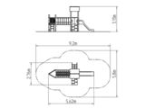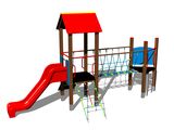 Štvorboká vež, trojboká vež, šmýkačka, strieška ve tvare "A", bariéra z HDPE, kolmý rebrík, šikmý výlez s lanom a nášľapy z HDPE, lanový most medzi vežami, šikmý sieťový výlez. Viac informácií