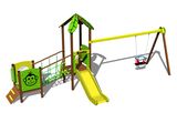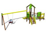 2x vež, šmýkačka, strieška v tvare listu, šikmý výlez s nášľapy a madlami z HDPE, šikmý výlez s nášľapy z HDPE, priezor, šikmý lanový most medzi vežami, 2x bariéra, kovový nosník, Sedadlo BABY. Viac informácií