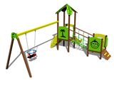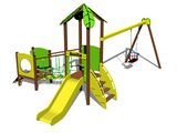 2x vež, šmýkačka, strieška v tvare listu, šikmý výlez s nášľapy a madlami z HDPE, šikmý výlez s nášľapy z HDPE, priezor, šikmý lanový most medzi vežami, 2x bariéra, kovový nosník, Sedadlo BABY. Viac informácií