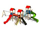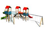 Sedadlo a houpačkové závesy nie sú súčasťou hojdačky. Nutné prikúpiť sedátko (2 ks) podľa výberu a houpačkové závesy (4 ks). 3x vež, šmýkačka, tobogan, 3x strieška v "A" ihlanu, 6x Bariéry z HDPE, šikmý výlez s lanom a nášľapy z HDPE, šikmý výlez s nášľapy a kovovými madlami, lanový most medzi vežami, preliezací tunel medzi vežami, kolmá šplhacia sieť 2x2 m, kovové rahno. Viac informácií