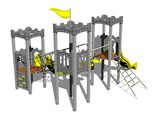 3x vež, 2x šmýkačka, 4x bariéra z HDPE, šikmý sieťový výlez, šikmý lanový most medzi vežami, kolmá lezecká stena na veži s nášľapmi, vlajka, 3x cimburie z HDPE, lanový most s nášľapmi. Viac informácií