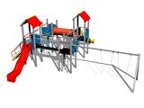 Sedadlo a houpačkové závesy nie sú súčasťou hojdačky. Nutné prikúpiť sedátko (2 ks) podľa výberu a houpačkové závesy (4 ks). 4x vež, 2x šmýkačka, 2x strieška v tvare "A", 5x bariéra z HDPE, kolmý rebrík, šikmý výlez s nášľapy a kovovými madlami, šikmý výlez s lanom a nášľapy z HDPE, lanový most medzi vežami, most s lanovým zábradlím, preliezací tunel medzi vežami, kolmá šplhacia sieť v tvare pavučiny, kovové rahno. Viac informácií