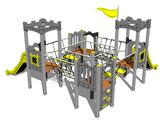 4x vež, 2x šmýkačka, 4x bariéra z HDPE, šikmý sieťový výlez, 2x lanový most medzi vežami, kolmá lezecká stena na veži s nášľapmi, vlajka, 2x cimburie z HDPE, 2x lanový most s nášľapmi. Viac informácií