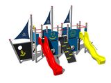 5x vež, 2x šmýkačka, kovová bariéra usadené do kovového rámu, 3x stožiar s vlajkou, kresliaca tabuľa, 4x bariéra s priezorom, šikmý sieťový výlez, šikmý výlez s lanom a nášľapy z HDPE, vlajka, kotva a kormidlo z HDPE, šikmá lezecká stena s horolezeckými úchytmi, 1x šikmý rebríkový výstup s kovovými nášľapy, kolmý rebrík, 4x bariéry z HDPE. Viac informácií