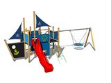 6x vež, 2x šmýkačka, šikmý výlez s nášľapy a kovovými madlami, šikmý sieťový výlez, 2x stožiar s vlajkou, kormidlo, kotva, 2x bariéra usadená do dreveného rámu, kresliaca tabuľa, 2x bariéra s priezorom, 4x bariéra z HDPE, reťazová hojdačka. Viac informácií