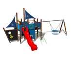 6x vež, 2x šmýkačka, šikmý výlez s nášľapy a kovovými madlami, šikmý sieťový výlez, 2x stožiar s vlajkou, kormidlo, kotva, 2x bariéra usadená do dreveného rámu, kresliaca tabuľa, 2x bariéra s priezorom, 4x bariéra z HDPE, reťazová hojdačka. Viac informácií