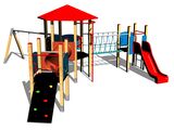 Sedadlo a houpačkové závesy nie sú súčasťou hojdačky. Nutné prikúpiť sedátko (1 ks) podľa výberu a houpačkové závesy (2 ks). 2x štvorboká vež, šesťboká vež, šmýkačka, strieška, lanový most, preliezací tunel, šikmá lezecká stena s horolezeckými úchytmi, kolmý rebrík, požiarna tyč, kovové rahno, 6x bariéra z HDPE. Viac informácií