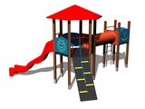 Štvorboká vež, šesťboká vež, šmýkačka, strieška, kolmý rebrík, preliezací tunel medzi vežami, šikmý výlez s lanom a nášl'apy z HDPE, 5x bariéra z HDPE. Viac informácií