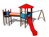 Sedadlo a houpačkové závesy nie sú súčasťou hojdačky. Nutné prikúpiť sedátko (1 ks) podľa výberu a houpačkové závesy (2 ks). Štvorboká vež, šesťboká vež, šmýkačka, strieška, 2x kolmý rebrík, preliezací tunel medzi vežami, kovové rahno, 5x bariéra z HDPE. Viac informácií