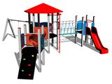 Sedadlo a houpačkové závesy nie sú súčasťou hojdačky. Nutné prikúpiť sedátko (1 ks) podľa výberu a houpačkové závesy (2 ks). 2x štvorboká vež, šesťboká vež, šmýkačka, strieška, lanový most, preliezací tunel, šikmá lezecká stena s horolezeckými úchytmi, kolmý rebrík, požiarna tyč, kovové rahno, 6x bariéra z HDPE. Viac informácií