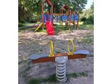 Vahadlová jednohojdačka na pružine VH102K - celokovová, ako dopadová plocha postačí trávnik. Na výber sú tri farebné varianty konštrukcie - červená, hnedá a modrá. Viac informácií