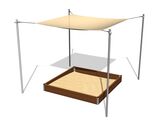 Nosná konštrukcia zatienenie pieskoviska je vyrobená z konštrukčnej oceli, ktorá je proti korózii chránená žiarovým zinkovaním, čím sa docieli veľmi výrazného predĺženia životnosti hracieho prvku. Táto konštrukcia je uložená do betónového lôžka. Zatienenie pieskoviska je vyrobená z pogumovanej polyesterovej siete, odolná proti UV žiareniu. Všetok spojovací materiál je pozinkovaný alebo nerezový.