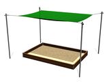 Nosná konštrukcia zatienenie pieskoviska je vyrobená z konštrukčnej oceli, ktorá je proti korózii chránená žiarovým zinkovaním, čím sa docieli veľmi výrazného predĺženia životnosti hracieho prvku. Táto konštrukcia je uložená do betónového lôžka. Zatienenie pieskoviska je vyrobená z pogumovanej polyesterovej siete, odolná proti UV žiareniu. Všetok spojovací materiál je pozinkovaný alebo nerezový.